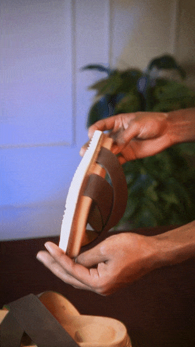 Salam Caca, one of our veteran makers, spent months on the first prototype — reshaping the cross-strap again and again until it sat just right on the foot.