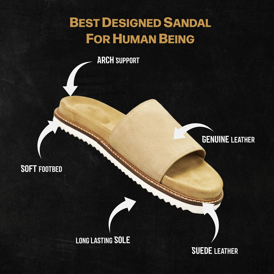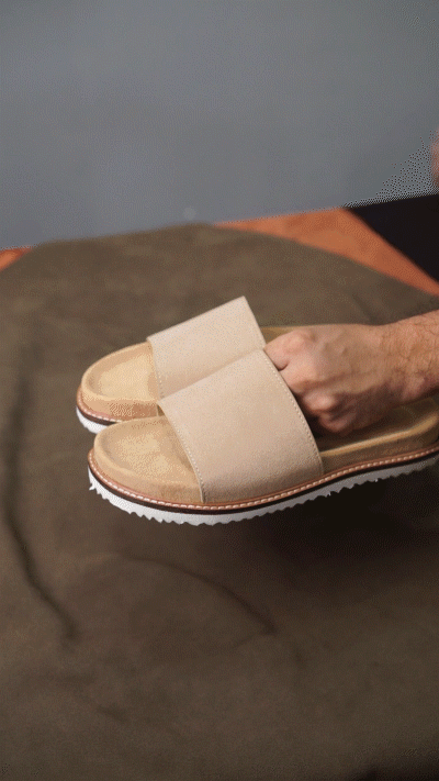 Hand-cut, hand-finished — every pair tells a story of slow craftsmanship and quiet luxury. Wrapped in supple suede, this slide is made for moments that don’t rush. Understated, effortless, and unmistakably refined.